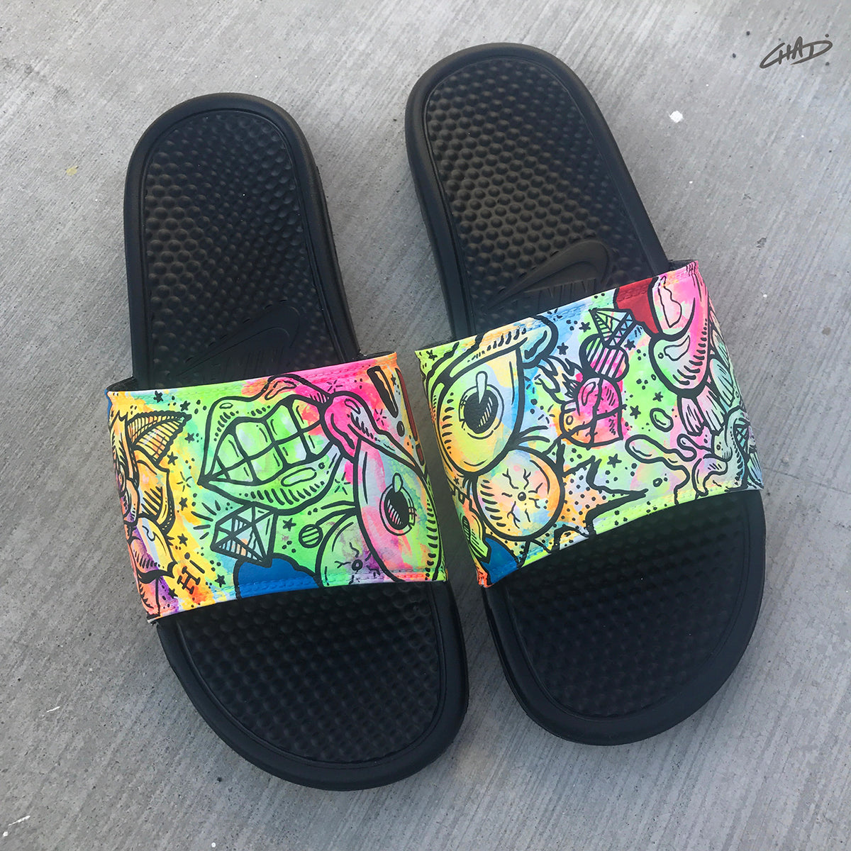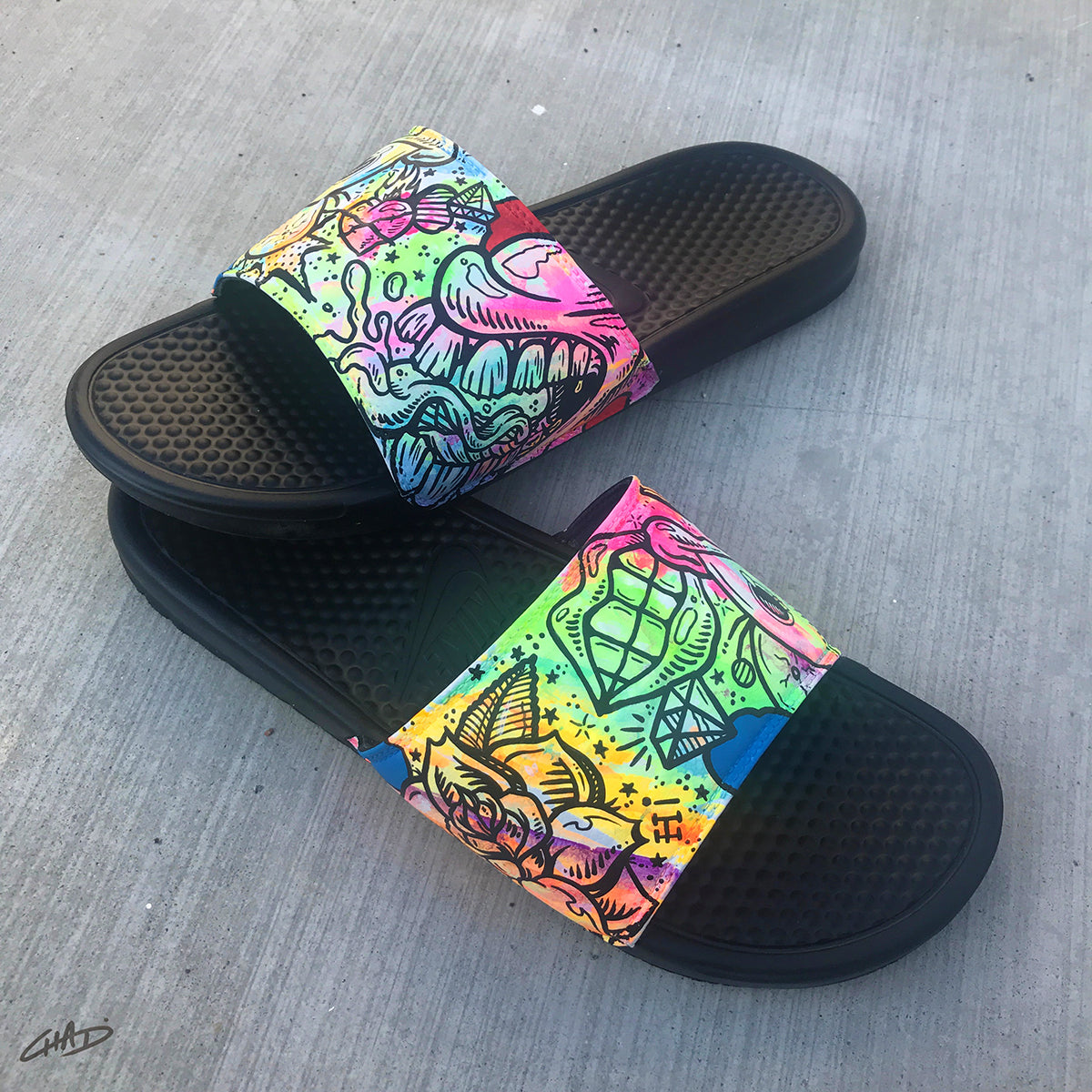 Battery Acid - Hand Painted Nike Slides aka Sandals, Flip Flops